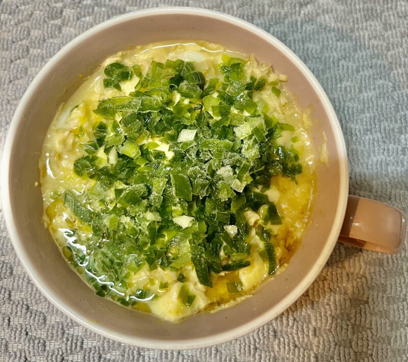 レンジのみで簡単⭐︎オートミール卵雑炊の作り方|火も包丁も使わないずぼらレシピ