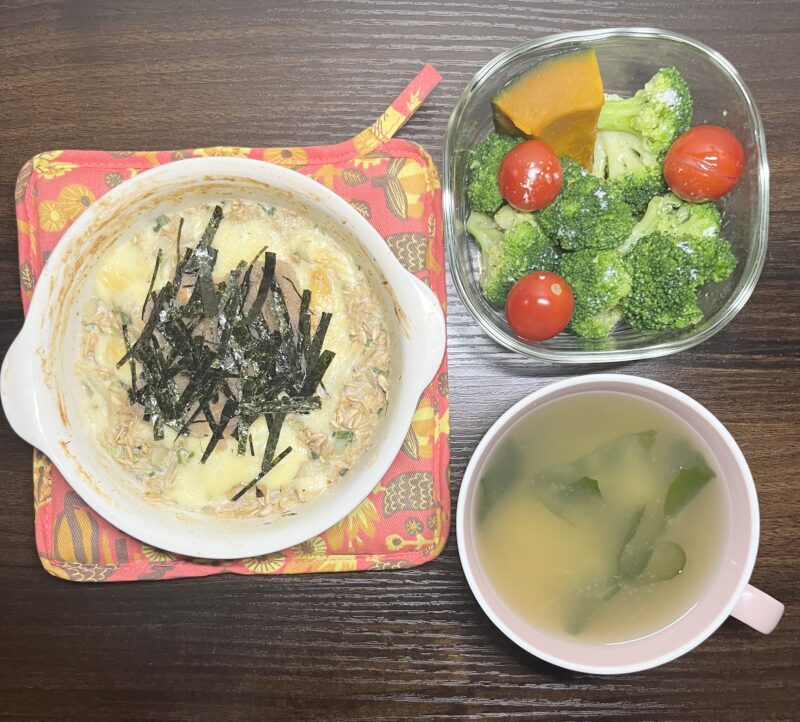 左はオートミールたらこドリアです(レシピはこちら)