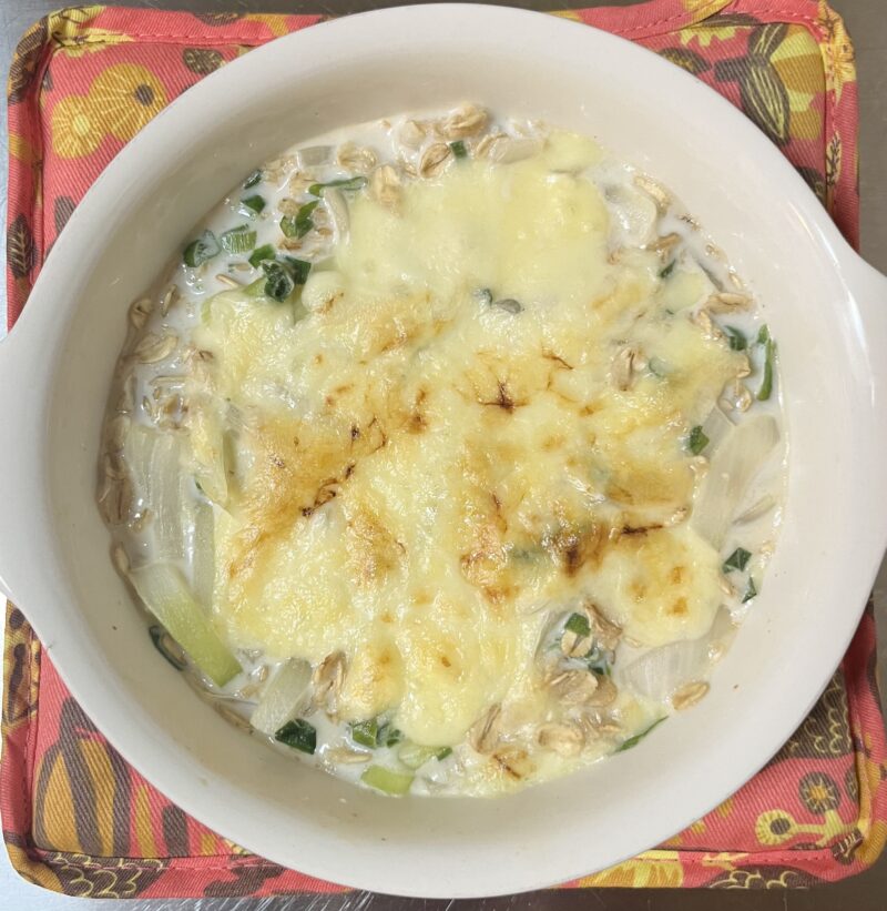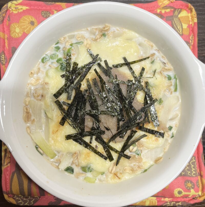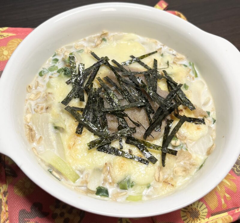 オートミールは美味しくなさそう、というイメージもあるかもしれないですが、オートミールとドリアは相性バツグンで、オートミール感がなく美味しく食べれます。たらことめんつゆの和風の味付けとクリーミーさが食欲をそそり、オートミールが苦手な方もオートミール感がなく食べれると思います。
