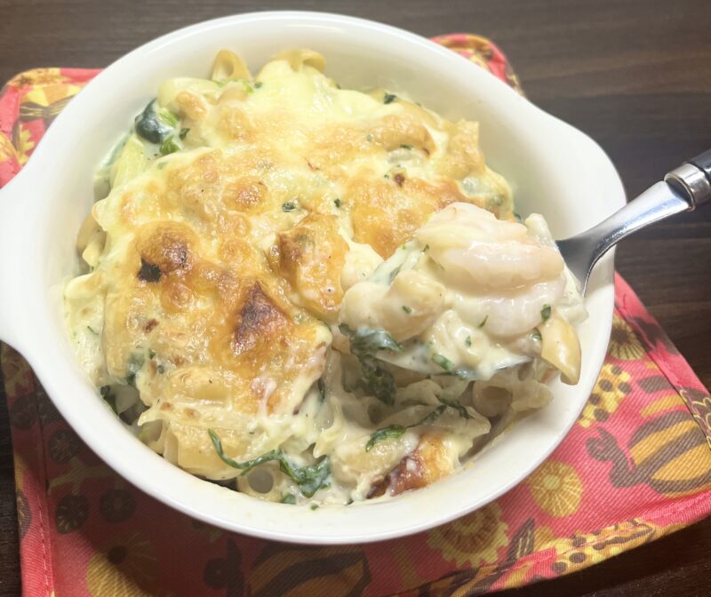 寒い季節になると食べたくなる、定番の海老マカロニグラタン🥘