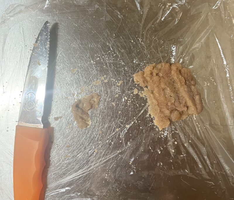 面倒なので私はまな板は使わず、ラップの上でたらこを切りましたw