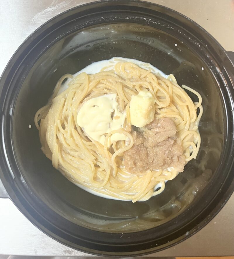 「たらこ(明太)クリームパスタ」といえばパスタを茹でて、ソースを絡めるだけなので比較的簡単なイメージですが、茹でるのもレンチンにすればさらに簡単になり、なりより洗い物が少なくなります。